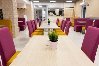 На территории клуба работают две точки питания: кафе вместимость до 20 человек и столовая на 50 персон. С утра и до вечера здесь подают сытные завтраки, горячие обеды и питательные ужины. В меню входят супы, салаты, мясное или рыбное второе с гарниром на выбор, свежая выпечка и напитки. Блюда можно заказать комплексно, либо по отдельности.